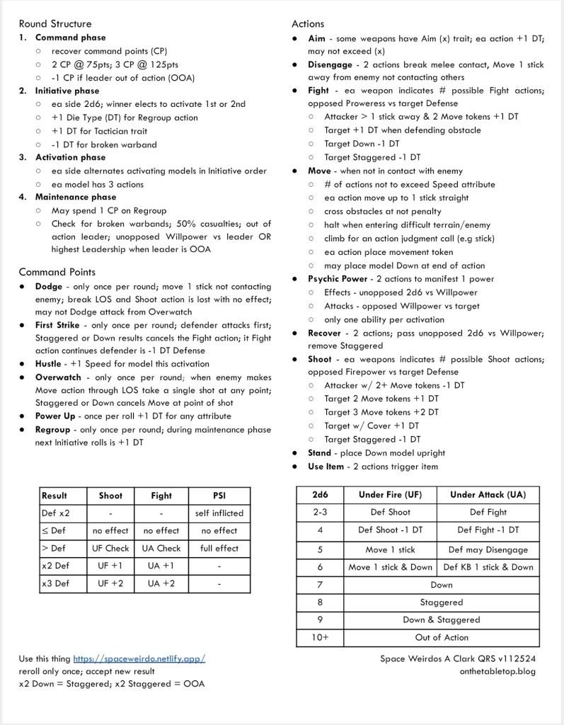 Casey Garske’s “Voidfighter” is out and I’ve just had a chance to play. I enjoyed my first game with these rules and looking forward to the next. In support of my next out I’ve quickly refined my Space Werido QRS in support of Voidfighter.