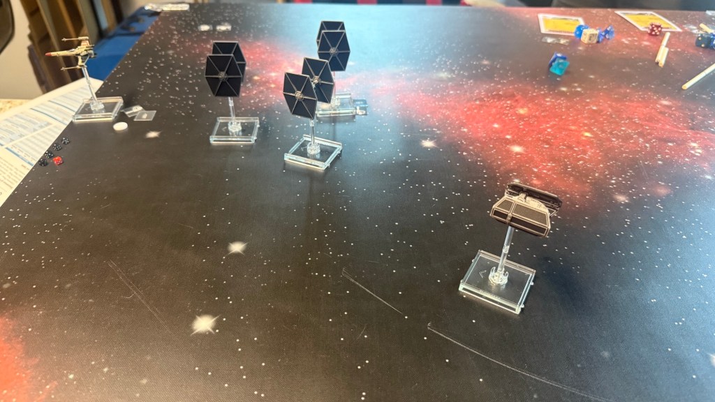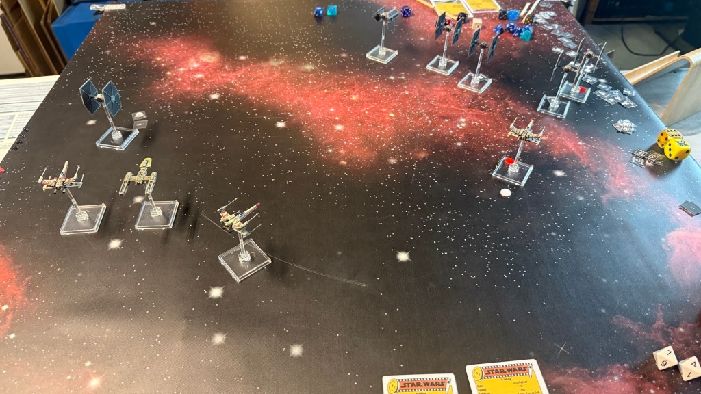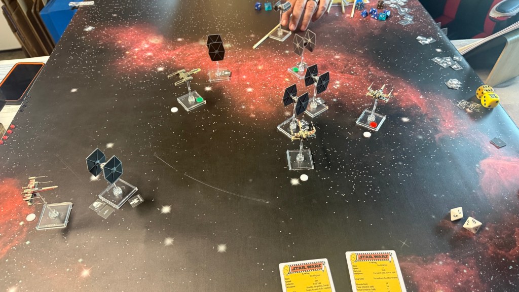 Finally a few snaps from our first game. There are some lovely custom cards prepared by my good friend, sadly they were not enough to save my brave rebels, none of us escaped the fist of the Emperor Jeff. 😦