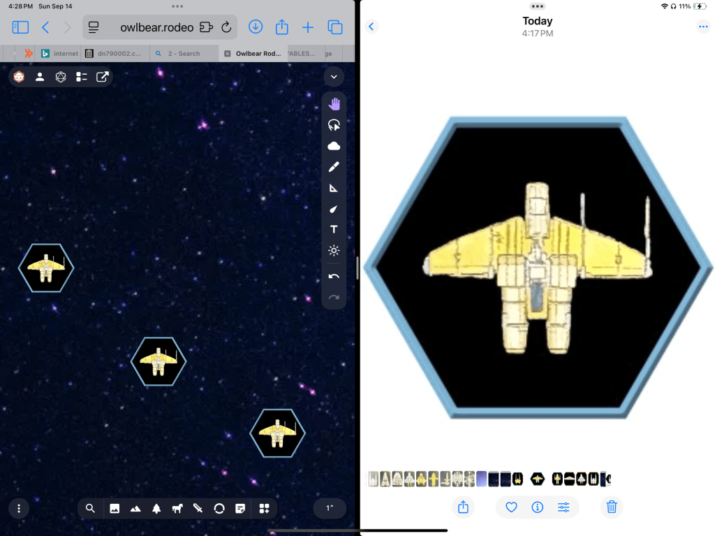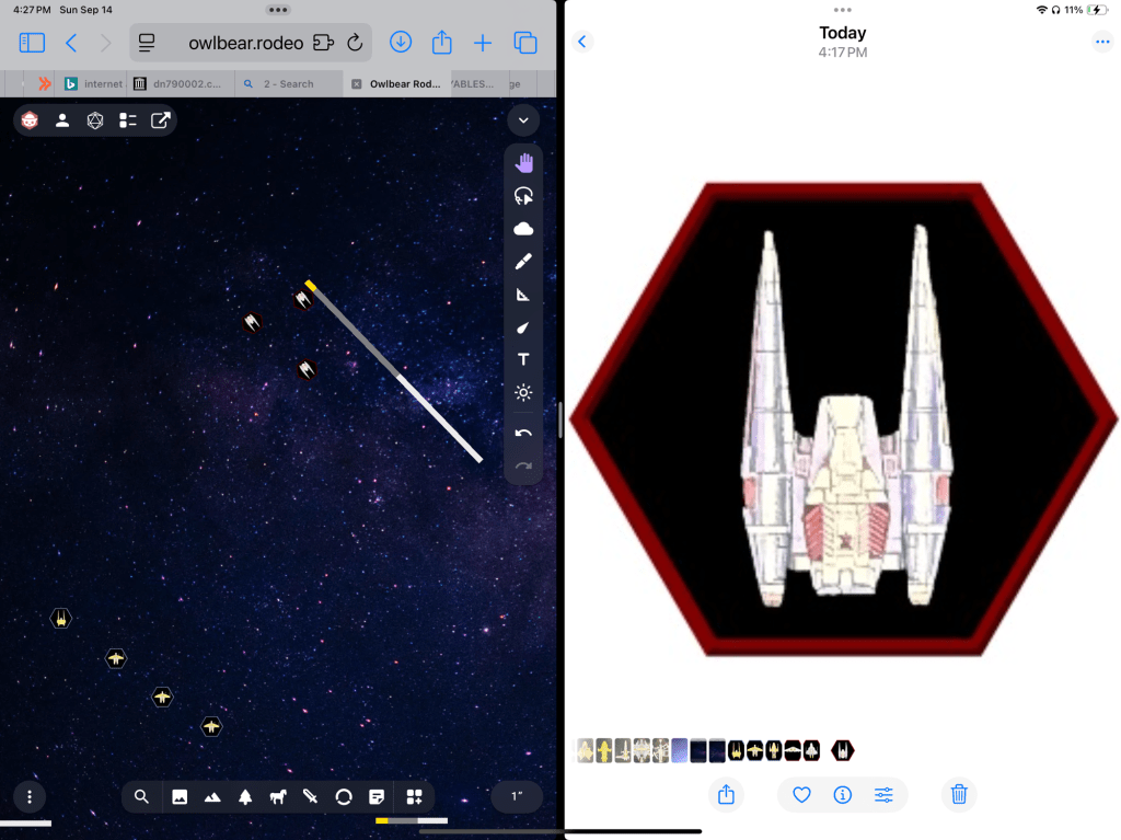 An online gaming buddy has asked if we could play Voidfighter online, sure why not. Here are a few snaps of an Owlbear Rodeo session I whipped up this afternoon. The ships are from FASA’s Renegade Legion: Interceptor.