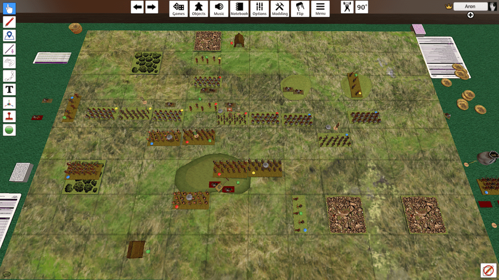 For those not familiar with To the Strongest – it is a British rule set published in 2015 – covering ancient through medieval wargaming. This game is a played on a grid, uses playing cards instead of dice, and very well suited to Table Top Simulator.